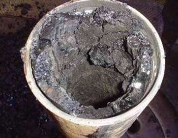 Asphaltene deposit in production tubing, creating flow assurance issues.