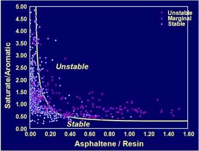 The asphaltene and resin contents do not define whether asphaltenes will be precipitated from any given crude under operational conditions. Companies have used two methods to establish how close to asphaltene instability a crude will be.