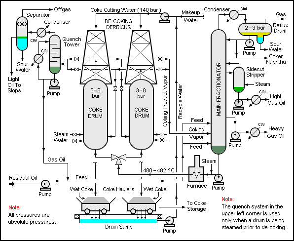 The schematic flow diagram below depicts a typical delayed coker: