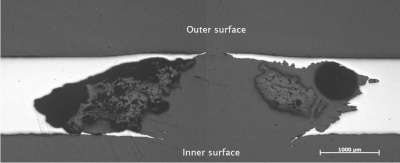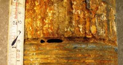 The production tubing was pulled and studied in detail[3]. The corrosion attack was limited to one side of the tubing, and some tubing joints were so corroded that there was actually holes through them. Approximately 8.5 mm thick 3% chrome steel had disintegrated in less than 8 months due to exposure to concentrated scale inhibitor leaked from the chemical injection line.