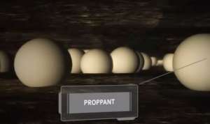 The fracturing pumps increase the pressure of the fluid, sending it back through the high pressure side of the manifold to the fracturing where it enters the well. The entire fracturing process is controlled from the treatment monitoring van. When the fracturing fluid reaches the perforations, pressure builds into the shale formation fractures, allowing fluid to enter into the formation. Additional fractures are created along natural zones of weakness in the shale. These fractures are contained within the shale formation well below the ground. After the initial stage of fluid, called the pad, is pumped to create a fracture area. Proppant is added into the fluid and this distributed throughout the newly created fracture network. At the conclusion of the fracturing treatment the proppant allows the fractures to remain open so that the natural gas can flow into the production casing into the surface. These complete the first of several stages in the fracturing process.