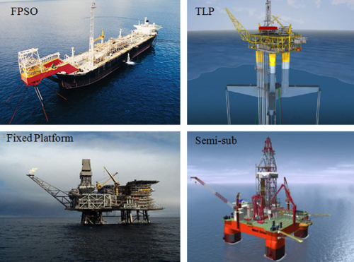 - Semi-submersible platforms: Semi-submersible platform can be operated for drilling, subsea equipments installation and oil/gas production.