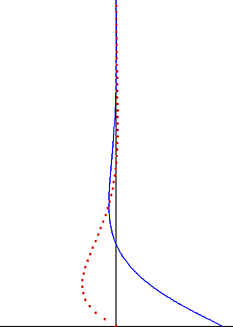 \[u_1 = \Re\left\{ F(z)\; \text{e}^{-i\, \Omega\, t} \right\},\] with i2 = -1 and ℜ{•} denoting the real part of the quantity between brackets. Then from the flow equation, F(z) is required to satisfy: \[-i\, \Omega\, F = \nu \frac{\text{d}^2 F}{\text{d} z^2}\] with the boundary conditions: \[ \begin{align} F &= U_0 & \qquad & \text{ for } z = 0, \\ F &\to 0 & \qquad & \text{ for } z \to +\infty. \end{align} \] The solution for F(z) becomes: \[F(z) = U_0\, \text{e}^{(-1+i)\, \sqrt{\frac{\Omega}{2\nu}}\, z}.\] |