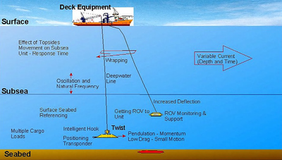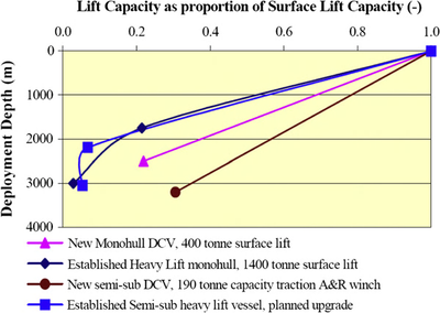 The lifting and lowering system directly related to the weight of the loads to be lowered to the deep seabed, the dynamic responses that can augment these loads, and the decrease in the capability of the lifting systems. The load control and positioning system related to placing the load in the desired location, at the correct compass heading, and at a stable attitude on the seabed. The effects of these issues are discussed in following sections.