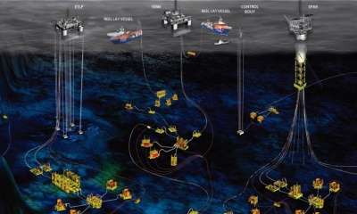 They were first used by Shell on the Auger tension leg platform in 1994 which was moored in 2860ft of water.[3]. Two 12-in lines were used for oil and gas export. Recently they have been used in large numbers as production risers in Bonga FPSO.